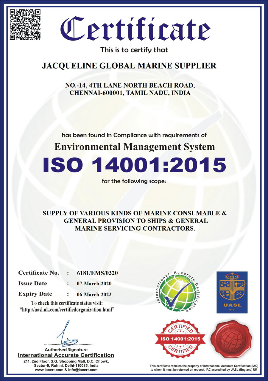 Jacqueline Global Marine Supplier also supply marine chemicals to ships. We are keeping ready stock of ship maintenance Chemicals,Tank Cleaner,Carbon Remover,Acc-9,Antiscalant,Safe acid descaling Chemicals,Electrosol etc