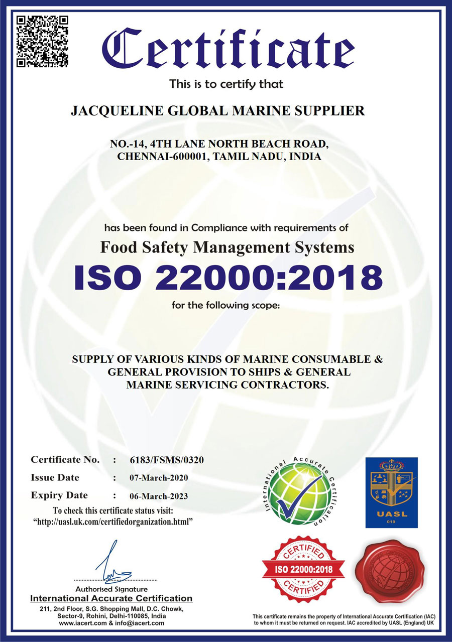 Jacqueline Global Marine Supplier offers Inspections and Annual Maintenance to your firefighting and personal safety equipment to help you reduce the risk of damage to your vessel, injuries to your crew and customers, and fines from fire code noncompliance.